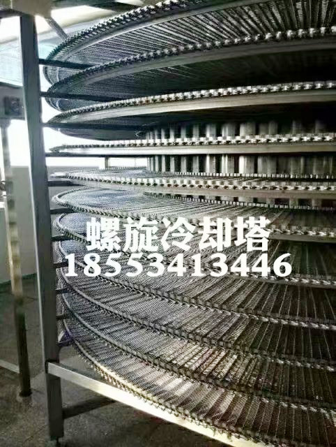 螺旋冷卻塔是一種常用的連續(xù)性輸送機械,它是利用工作構(gòu)件即螺旋體的旋轉(zhuǎn)運動使物料向前運送,是現(xiàn)代化生產(chǎn)和運輸不可缺少的重要機械設(shè)備之一!螺旋冷卻塔的優(yōu)點:占地面積小,結(jié)構(gòu)簡單、合理。 動力消耗小,料槽磨損小 維修方便 冷卻效率高 ,傳送暢順、雜音少、低能耗、保養(yǎng)簡單、快速、安全。螺旋冷卻塔應(yīng)用范圍:適用于冷卻漢堡,法式小面包,毛毛蟲,面包等產(chǎn)量較大,冷卻時間較長的品種,采用不銹鋼螺旋式冷卻輸送帶,PLC智能控制。在功能不變,結(jié)構(gòu)的變化帶來成本的變化,最終帶來了利潤的變化,使中小型食品廠買的起,用的起。螺旋冷卻塔選用不銹鋼螺旋網(wǎng)帶載體,網(wǎng)帶寬度300-900mm,層間距及層數(shù)依產(chǎn)量定制,冷卻時間20-120分鐘.冷卻產(chǎn)量大,可直接冷卻漢堡,吐司,甜面包,也可帶盤冷卻月餅,奶香包等.定制靈活,依據(jù)場地和產(chǎn)能設(shè)計直徑和網(wǎng)帶.單塔為上進下出或下進上出.雙塔為下進下出.我廠可根據(jù)用戶的產(chǎn)量身訂做,打造經(jīng)濟實惠的非標(biāo)螺旋冷卻塔,可大大提高生產(chǎn)效率。